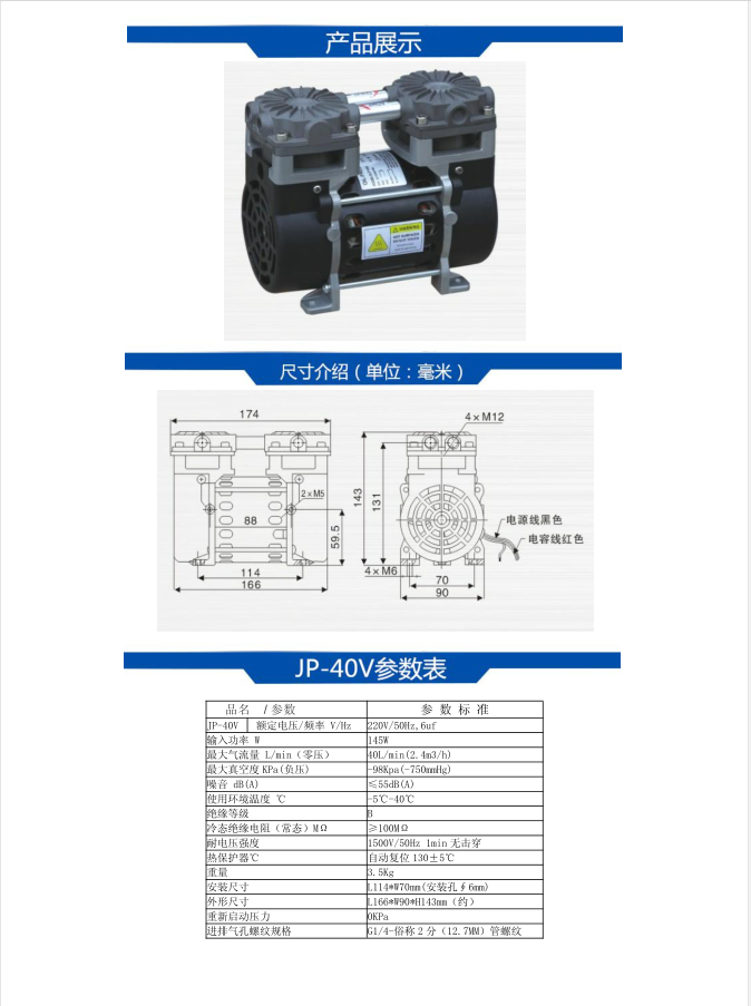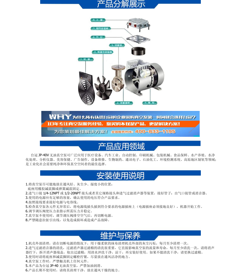 JP-40V臺冠無油真空泵