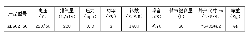 8.本產品為臺冠ML602-50無油空氣壓縮機,嚴禁加油潤滑。